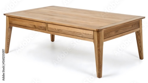 Scandinavian-Style Coffee Table with a Natural Wood Finish, Isolated on a White Background, perfect for contemporary home interiors, Professional Home Decor Stock Image