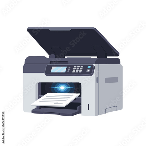 Scanner printer with lid open and light beam