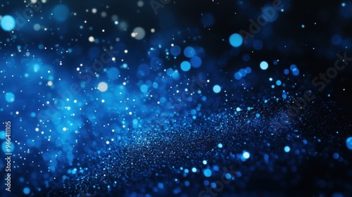 Scattered deep blue particles against a dark backdrop create a striking, festive design element