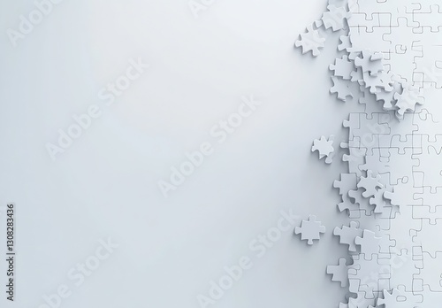Scattered jigsaw puzzle pieces creating a modern aesthetic with clean background and minimalistic style : Generative AI