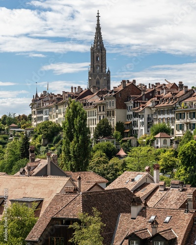 Scenic aerial view of Bern's old town seen from Rose Garden viewpoint, Switzerland.