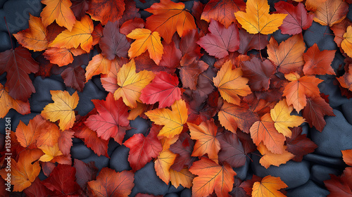 Scenic Autumn Background with Colorful Maple Tree Leaves, autumn leaves, fall foliage, maple trees, autumn sunlight, golden autumn, nature background, seasonal vibes, fall colors, park scenery, autumn