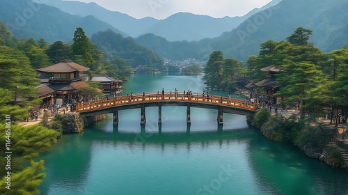 Scenic Japanese Bridge Across Calm River Valley