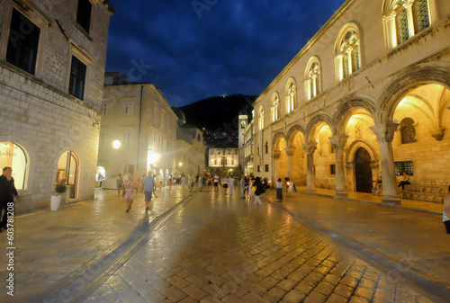 Scenic night view at famous historic street in Dubrovnik, Croatia , Europe.