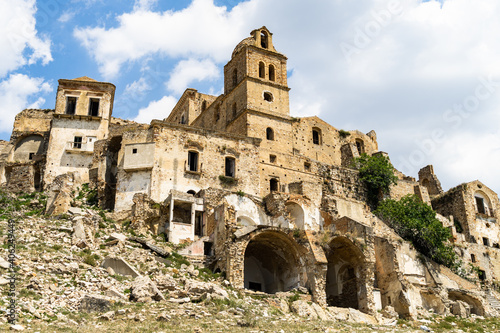 Scenic ruins of abandoned buildings in Craco, an abandoned ghost town in Basilicata region, Italy