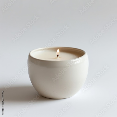 Scented candle in oversized cylindrical cup, pure white background, simple decoration, fresh and authentic