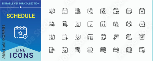 Schedule icon set. Included deadline, month, date and time, plan, organizer, organize, date and more. Calendar icon pack. Modern vector UI icons. Editable stroke vector art.