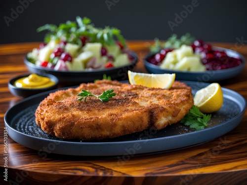 Schnitzel: Austria’s Crispy, Golden-Breaded Cutlet, Expertly Fried for a Perfect Crunch, Offering a Deliciously Tender & Flavorful Bite in Every Slice