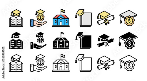 SCHOLARSHIP.icon set with multiple style standard, compliance, guideline, rule, procedure, law and constraint