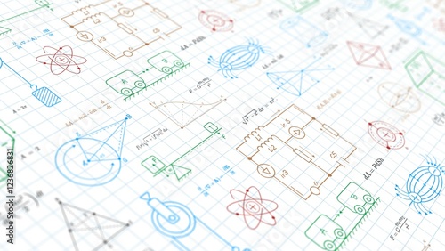School background in physics and mathematics .Formulas and drawings. Scientific research.