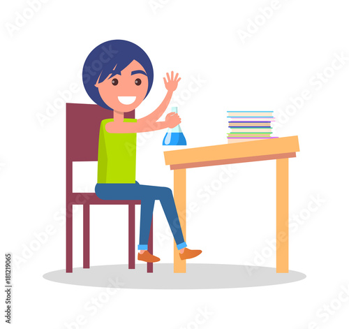 Schoolboy Sitting at Desk Icon Vector Illustration
