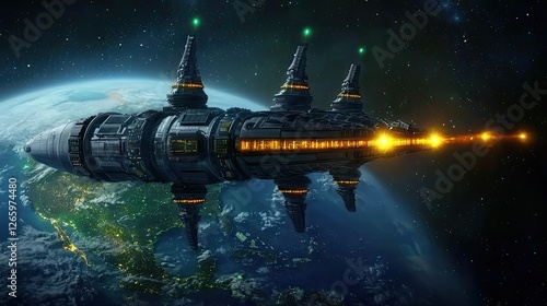 Sci Fi Concept of a Space Station Powered by Advanced Nuclear Fusion, A massive futuristic space station orbiting Earth, fully powered by an advanced nuclear fusion reactor, glowing energy conduits