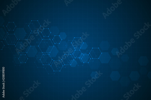 Science background with hexagons design. Geometric abstract background with molecular structure.