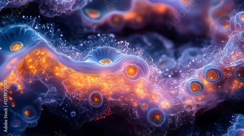 Scientific and artistic blend of microscopic details creating a vibrant glowing biological tapestry