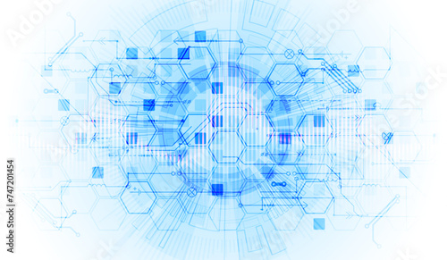Scientific and technological concept with the use of technical elements formed in the shape of a circle.