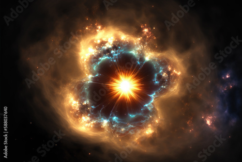 Scientific astronomical background, bright quasar in deep space. Generative AI