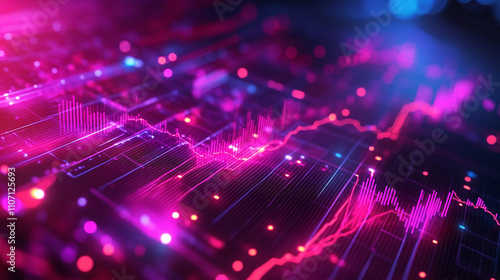 Scientific graph with a glowing line of data points representing research results, with room for copy space.