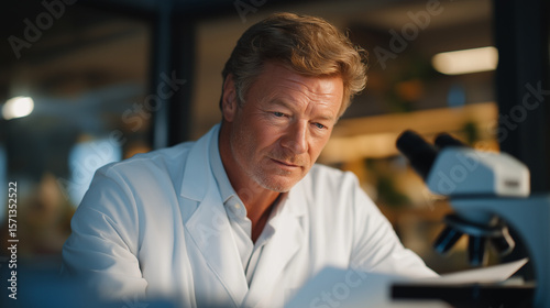Scientist Analyzing a Bond with Microscope in a Lab Environment