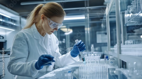 Scientist analyzing microplastics lab using technology tools glassware chemicals. AI generated