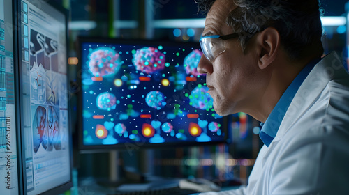 Scientist Analyzing Molecular Structure on Computer Screen - Photo