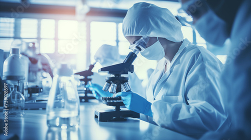 Scientist concentrating on her work in the lab, measuring and analyzing science or research results