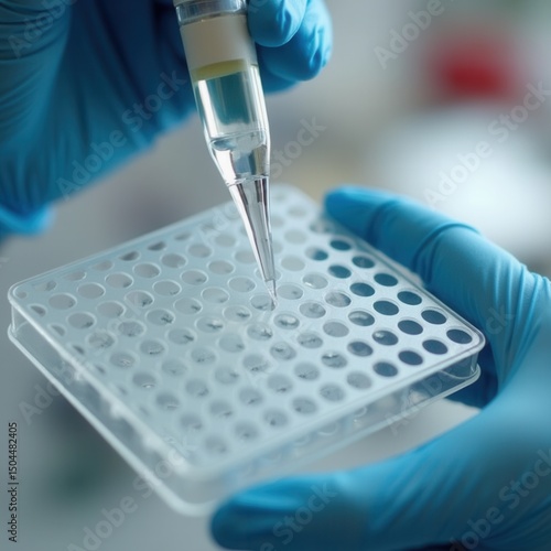 Scientist hands precisely dispensing genetic material samples for synthetic biology circuit testing protocols