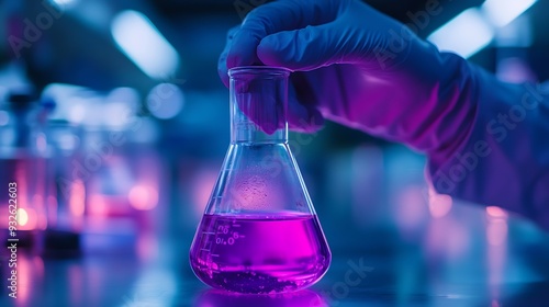 Scientist holding a beaker with a purple substance in a lab : Generative AI