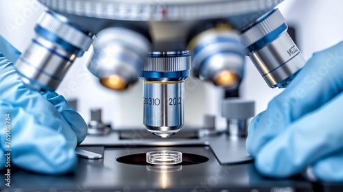 Scientist looking at a sample under a microscope