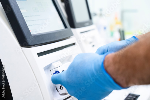 Scientist making a test of blood in laboratory. virus research