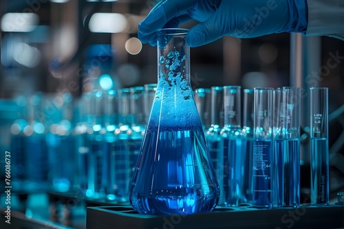 Scientist must always wear protective equipment such as gloves or gown in the laboratory with a light background. Ideal for concepts related to medical research or safety in chemical laboratory work.