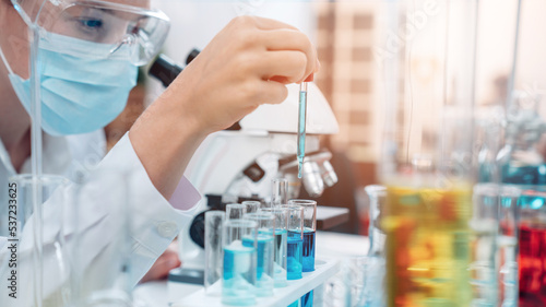 Scientist or researchers working in science laboratory, medical technology research work, science laboratory research and development concept.