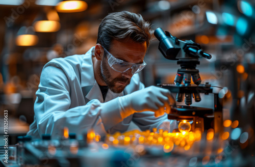 Scientist uses equipment to determine the size. A scientist is seen examining samples under a microscope in a laboratory.
