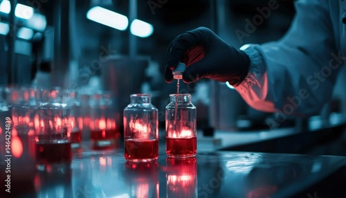 Scientist working in a lab with colored liquids