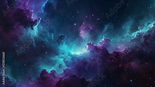 Sci-Fi: A mesmerizing abstract background with glowing nebula clouds, starry textures, and futuristic digital elements in deep space-inspired colors like navy, violet, and cyan.
