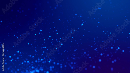 Sci-fi background. Glow blue particles on blue background are hanging in air for bright festive presentation with depth of field and light bokeh effects. Version 24