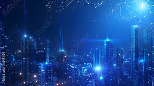 Sci-fi futuristic neon city of skyscrapers cityscape with space and light effect. Modern hi-tech, science, futuristic technology concept. Abstract digital high tech city design for banner background