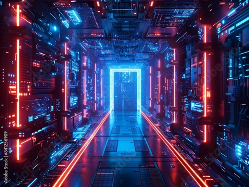 Sci-fi tech tunnel, neon lights, cyberpunk