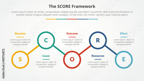 score model infographic concept for slide presentation with outline circle line connection up and down with 5 point list with flat style