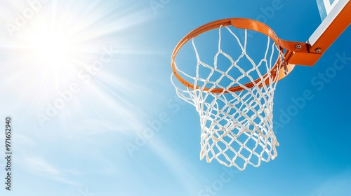 Scoring in basketball, net and blue sky scene