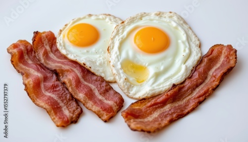 Scrambled Eggs and Crispy Bacon Served on a White Plate for a Wholesome Breakfast Experience