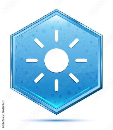 Screen brightness sun icon crystal blue hexagon button