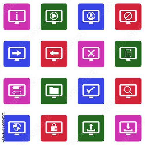 Screen Icons. White Flat Design In Square. Vector Illustration.