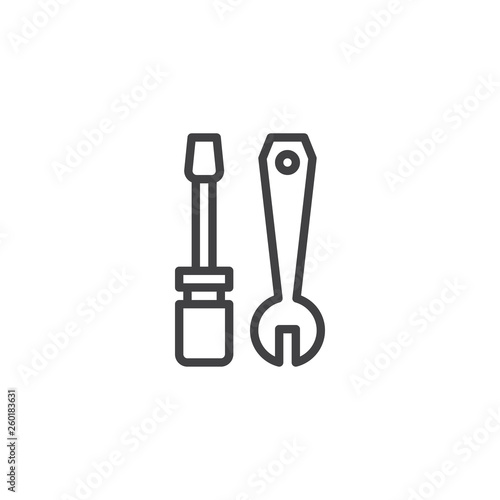 Screwdriver and Wrench line icon. Service setting linear style sign for mobile concept and web design. Repair tool outline vector icon. Symbol, logo illustration. Pixel perfect vector graphics