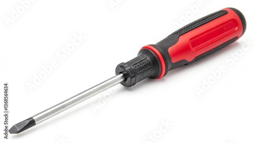 Screwdriver flat tip with red and black handle isolated on white with clipping path included