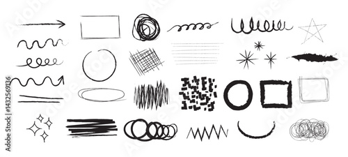 Scribbled Abstract Doodle Shape and line Element set , Abstract Hand Drawn Design Elements, Trendy vector illustration