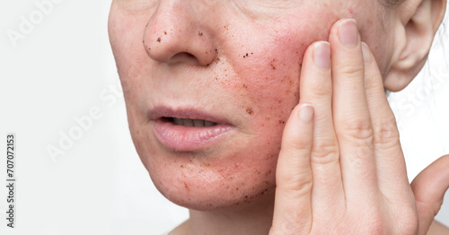 Scrubbing and washing a woman's face. Portrait of a beautiful woman with natural and healthy facial skin.