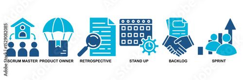Scrum icon set vector illustration concept with icon of scrum master, product owner, retrospective, stand up, backlog, and sprint