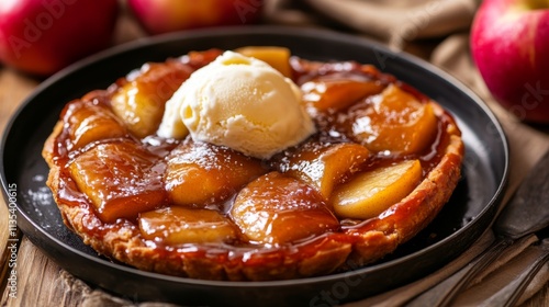 Scrumptious Caramel Apple Tart with Vanilla Ice Cream
