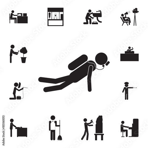 Scuba Diving floats under water icon. Set of professions disasters icons. Signs and symbols collection, simple icons for websites, web design, mobile app, info graphics