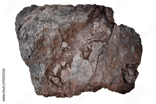 Sea cracked granite textured rock on transparent background. Close up stone background for design.